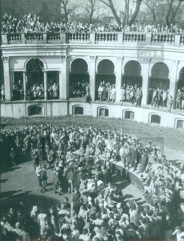 Wrocławianie wewnątrz amfiteatru znajdującego się na wrocławskim Wzgórzu Partyzantów podczas Dni Wrocławia.