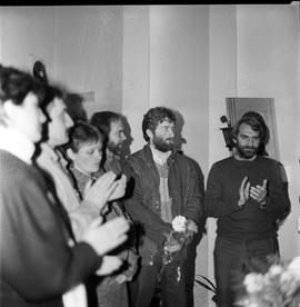 Wrocław, 01-08-1984. Kościół przy ul Bujwida pw.. św Wawrzyńca. Msza św. w rocznicę wybuchu Powstania Warszawskiego. Powitanie Władysława Frasyniuka zwolnionego z więzienia w wyniku amnestii. N/z Władysław Frasyniuk podczas spotkania w mieszkaniu ks. Orzechowskiego. Fot. NAF Dementi
