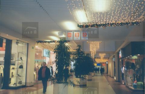 Wnętrze kompleksu handlowo-rozrywkowego "Arkady Wrocławskie" w dekoracji bożonarodzeniowej.