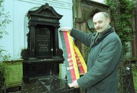 N/z żałobniczka obok grobu Czesława Rosińskiego na cmentarzu przy parafialnym pw. Św Jacka na wrocławskich Swojczycach.