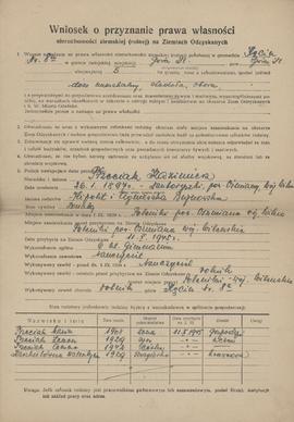 Wniosek o przyznanie prawa własności złożony przez Kazimierza Trzeciaka do Zarządu Gminy Góra Śląska, 3.09.1946.
