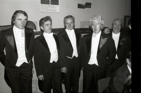 N/z członkowie orkiestry, od lewej: Henryk Dudek (puzon), Stefan Mirosław (tuba), Marian Maciejewski (puzon), Aleksander Berezowski (puzon) i Edward Nowicki (waltornia).