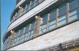 Dom towarowy "Renoma" (PDT) - okres bożonarodzeniowy [Pierwotna nazwa Wertheim, zbudowany w 1930 przez berlińską firmę handlową rodziny Wertheim. Uległ częściowemu zniszczeniu podczas II wojny światowej, otwarty ponownie w 1948 roku z okazji Wystawy Ziem Odzyskanych. Funkcjonuje do dziś jako obiekt handlowy i biurowy.]. Widok na detale przy oknach.