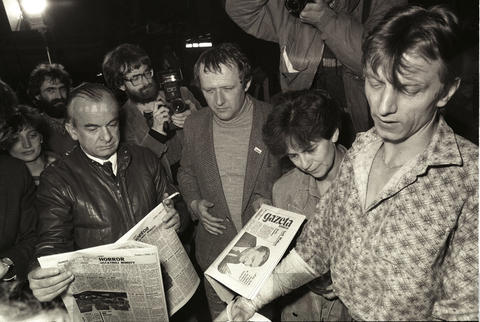 Warszawa, 08-05-1989 (do 27-12-1987) Druk pierwszego numeru Gazety Wyborczej. N/z w środku Adam Michnik i Helena Łuczywo. Fot. NAF Dementi