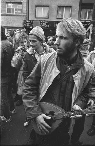 Wrocław, 21-10-1988., ul. Świdnicka. Happening Pomarańczowej Alternatywy: „Free-dom. Spokojna starosc na Świdnickiej”. Fot. NAF Dementi