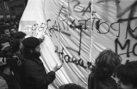 Warszawa, 24-02-1989 Happening Pomarańczowej Alternatywy: „Pollock potrafi”