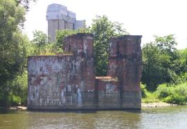 Segmentowy jaz z zasuwami, fragment Wrocławskiego Węzła Wodnego. Zbudowany w latach 1913-17, przebudowany w 1926.