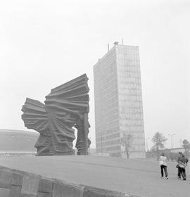 Podseria 4 fotografii z architekturą Katowic wykonanych przez Zbigniewa Nowaka w trakcie jego wyjazdu na finał Drużynowych Mistrzostw Świata na żużlu w Chorzowie 15 września 1974 r.
