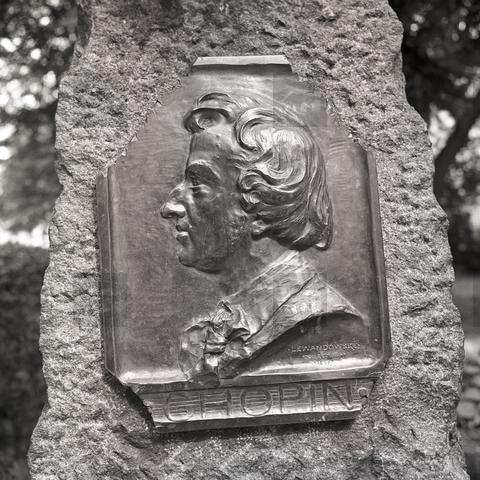 N/z obelisk z popiersiem Fryderyka Chopina wykonany przez pracownie braci Łopiewskich z Warszawy a ufundowany przez Wiktora Magnusa, odsłonięty 19 czerwca 1897 roku.