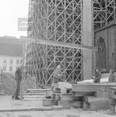 N/z ekipa ciesielska przygotowująca rusztowanie dla Kościoła Garnizonowego pw. św. Elżbiety