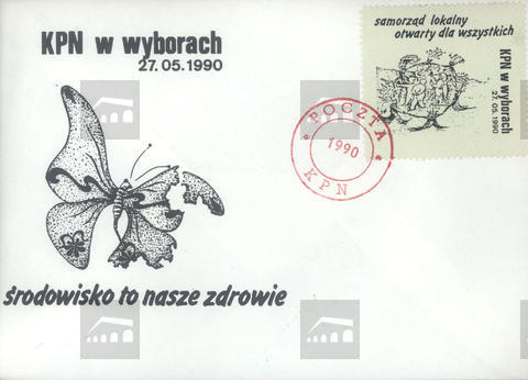 barwna, jednostronna, naklejony znaczek i pieczęć Poczty KPN