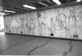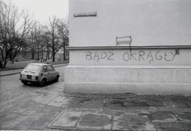 Informacja o zatrzymaniu przez funkcjonariuszy MO członków Teatru Ósmego Dnia pod pretekstem napaści na kontrolera MZK i funkcjonariuszy MO oraz o skazaniu ich na kary więzienia w budzącym szereg zastrzeżeń procesie; słaba jakość druku
