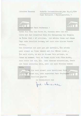 Pismo z nieczytelnym podpisem z podziękowaniem za przesłane książki.