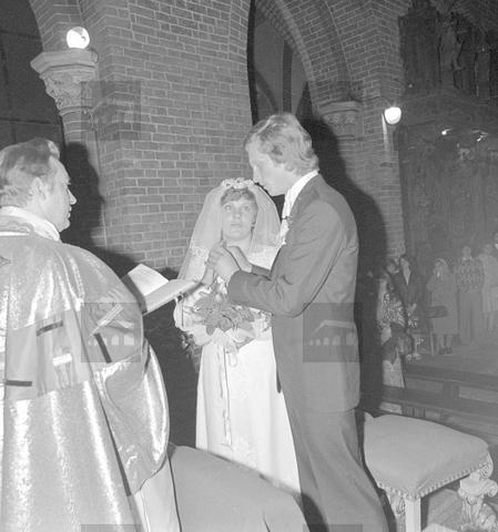 N/z młoda para stojąca przed katedralnym ołtarzem.