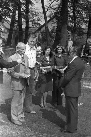N/z uroczyste otwarcie nowego boiska Polaru - w grupie osób dyrektor zakładu Karol Popiel (w jasnej koszuli).
