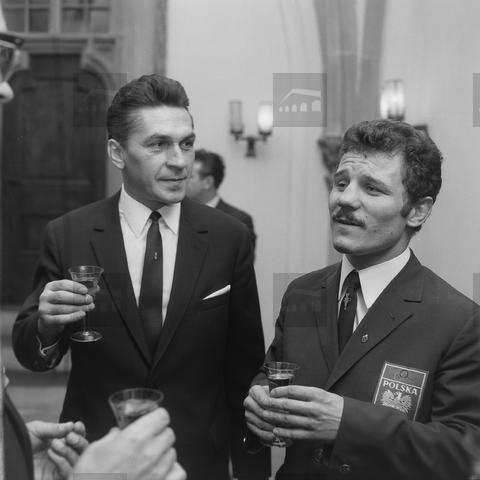 Olimpijczycy w ratuszu A. Olech w rozmowach kuluarowych. Obok niego jego trener - Michał Szczepan.