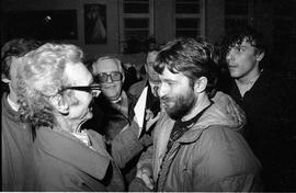 Wrocław, 27-01-1988, kościół św. Klemensa Dworzaka. Spotkanie opłatkowe z członkami byłego Regionalnego Komitetu Strajkowego NSZZ „Solidarność”. N/z od lewej Władysław Frasyniuk, Mirosław Jasiński, Barbara Labuda. Fot. NAF Dementi