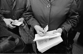 Wrocław, 01-03-1990. Demonstracja SW i Partii Nowej Prawicy pod hasłami: „Precz z sowiecka okupacją”, „Jaruzelski musi odejść” i „Rozwiązać SB”. Fot. NAF Dementi