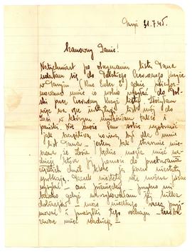 List Eugene Claudiusa Petita (1907-1989) prezesa Comité Francais des amis de la Pologne (Francuskiego Towarzystwa Przyjaciół Polski) do arcybiskupa Kominka w związku z kandydaturami na członków towarzystwa - m. in. preferowanie wyboru mężczyzn. Pojawia się również prośba o przekazanie informacji na temat biskupów amerykańskich podzielających powyższe zapatrywania.