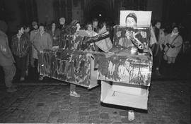 Wrocław, 07-02-1989 ul. Świdnicka. Happening Pomarańczowej Alternatywy: „Karnawał, czyli Śledzik na Świdnickiej” Fot. NAF Dementi