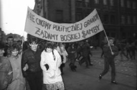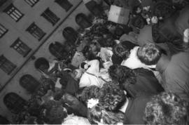 Warszawa, 05-05-1989 Akademia Sztuk Pięknych, strajk okupacyjny w sprawie zarejestrowania NZS, zorganizowany min. przez Pomarańczową Alternatywę