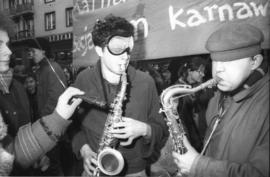 Wroclaw, 07-02-1989 ul. Swidnicka. Happening Pomaranczowej Alternatywy: „Karnawal, czyli sledzik na Swidnickiej” n\z Waldemar Fydrych