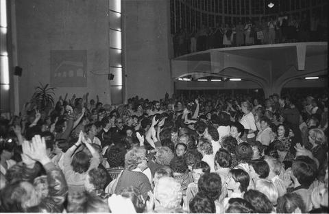 Wrocław, 02-08-1984. Kościół przy ul Bujwida pw.. św. Wawrzyńca. Czwartkowa msza św. w intencji Ojczyzny. Powitanie Władysława Frasyniuka zwolnionego z więzienia w wyniku amnestii. Fot. NAF Dementi