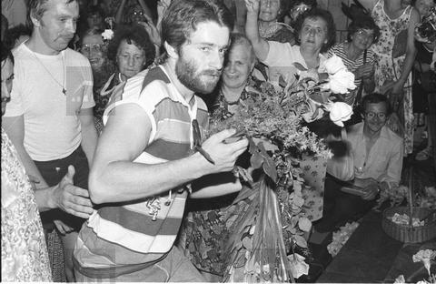 Wrocław, 01-08-1984. Kościół przy ul Bujwida pw.. św Wawrzyńca. Msza św. w rocznicę wybuchu Powstania Warszawskiego. Powitanie Władysława Frasyniuka zwolnionego z więzienia w wyniku amnestii. Fot. NAF Dementi