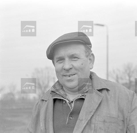 N/z pracownik wrocławskiego Przedsiębiorstwa Robót Kolejowych i Inżynieryjnych pozujący do fotografii.