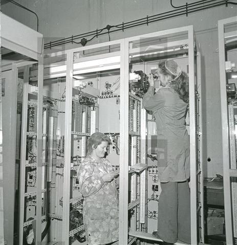 Wrocławski "Elektromontaż" m.in. dostarczał urządzeń służących do sterowania i obserwacji mechanizmów elektrycznych zasilających linie technologiczne Huty "Katowice". N/z: montaż elementów kontrolno-pomiarowych i sygnalizacyjnych w szafie sterowniczej dla Huty "Katowice".