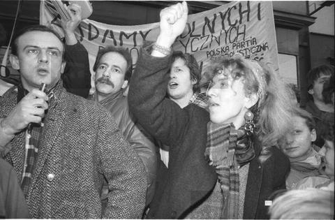 Wrocław 11-11-1988. Demonstracja w 70 rocznicę odzyskania niepodległości zorganizowana przez Polską Partię Socjalistyczną i Solidarność Walczącą.
