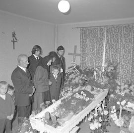 N/z trumna z zmarłym Stanisławem Pajączkowskim w kaplicy cmentarza przyparafialnego pw. Św. Jacka na wrocławskich Swojczycach.