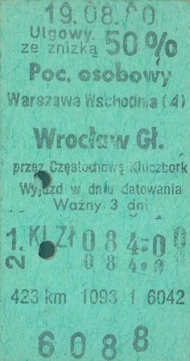bilet lotniczy Polskich Linii Lotniczych "LOT" na lot z Wrocławia do Warszawy 26.06.1968 r., zakupiony w Polskim Biurze Podróży "Orbis" we Wrocławiu 19.06.1968 r.