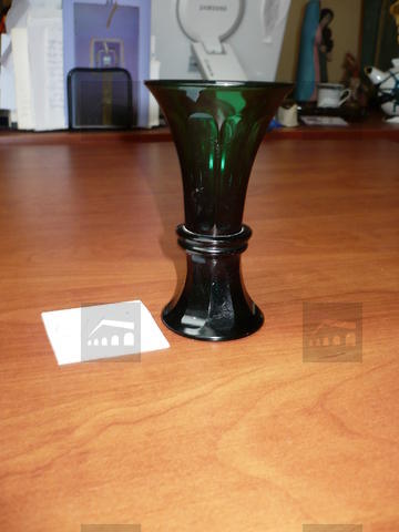 wazonik kanelowany u brzegu rżnięty emblemat – litera S nad nią korona