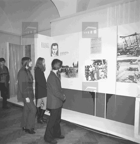 N/z młodzież zwiedzająca wystawę dotyczącą Polskiej Partii Robotniczej.