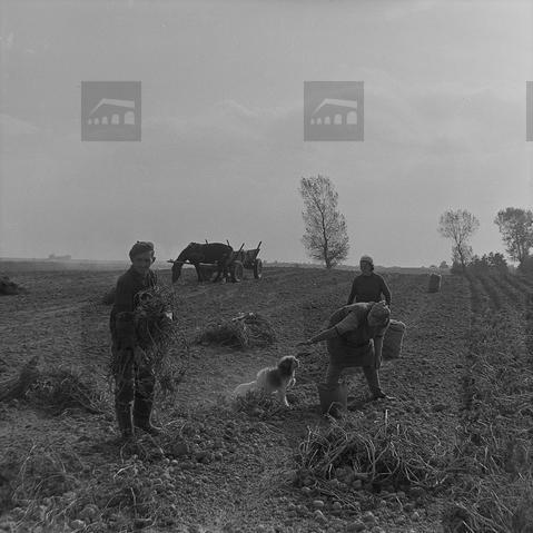 Czyszczenie ziemniaków z łodyg i ziemi.