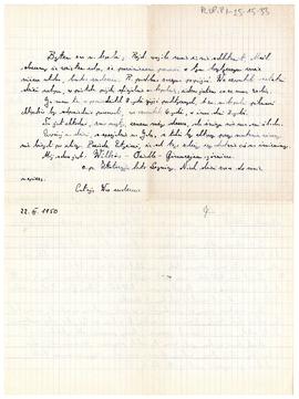 List Jana Fercza do żony, Marii Fercz z pobytu w Wilkowie pod Złotoryją.