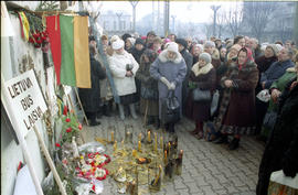 Wilno, 18-01-1991, do 19-01-1991. .Po przyjęciu deklaracji niepodległości przez parlamenty (sowieckie Rady Najwyższe) republik nadbałtyckich, min.: Litwa – 11.03.1990 i Łotwa – 4.05.1990, władze ZSRS w styczniu 1991 podjęły militarna probe powstrzymania niepodległościowych dążeń krajów nadbałtyckich. N/z miejsce uczczenia ofiar ataku (13.01.1991) OMON – sowieckich oddziałów specjalnych, na wieżę telewizyjną, w wyniku którego zginęło 13 osób i 700 zostało rannych. Fot. NAF Dementi