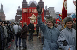 Moskwa, 07-11-1990. Plac Czerwony, państwowe obchody rocznicy rewolucji październikowej. N/z: cerkiew (sobór) Wasyla Błogosławionego. Fot. NAF Dementi
