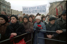Moskwa, 07-11-1990. Wiec poparcia dla Borysa Jelcyna, wtedy przewodniczącego Rady Najwyższej Rosyjskiej Federacyjnej Republiki Sowieckiej. Fot. NAF Dementi